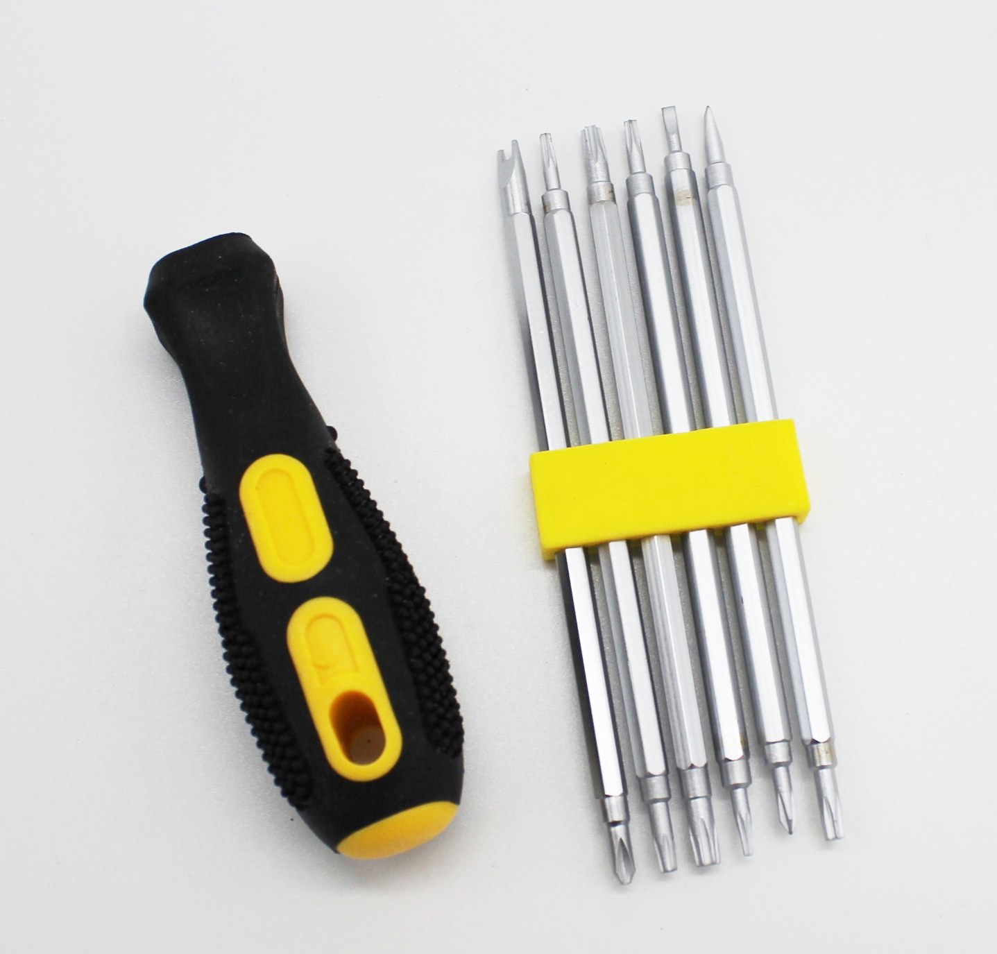 Описание для сайта:Набор инструментов Fatick DK-7661A (12 насадок - 4,5см) Прорезиненная ручка 8см длиной