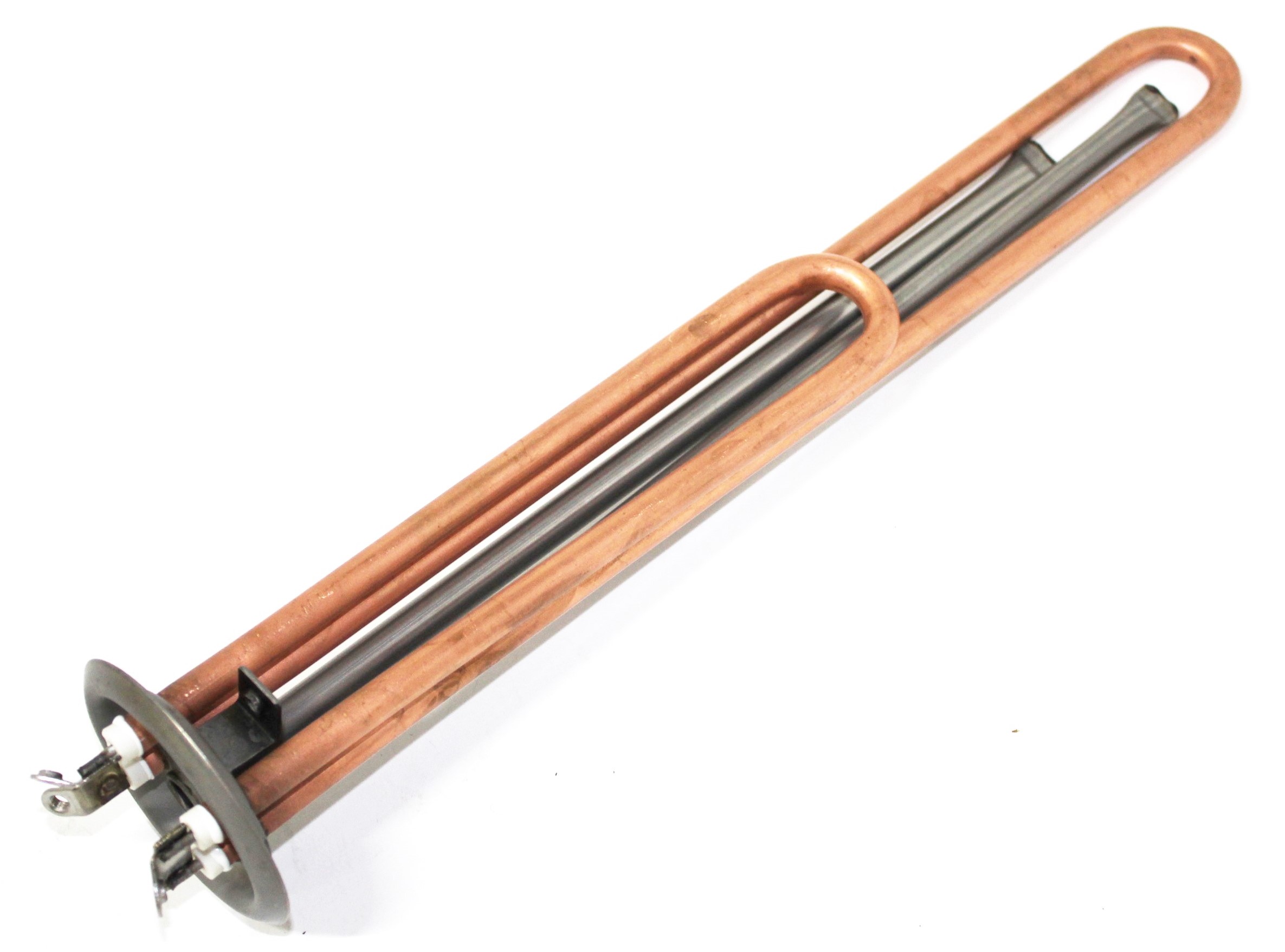 Нагревательный элемент для водонагревателя. Тип: RF Контакты под винт: М4 Два прямых ТЭНа 0.7+1.3 кВт Крепление под анод: M4 Мощность: 2,0 кВт D фланца: 64 мм Длина: 300 мм Под прокладку WTH211UN